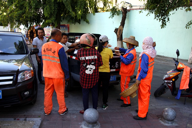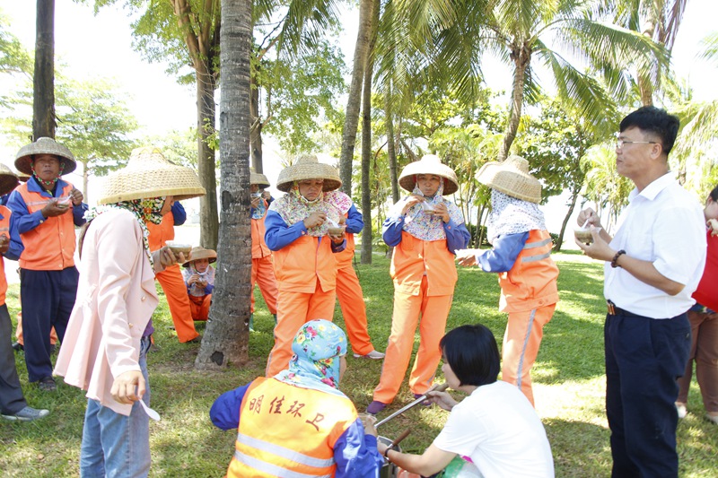 在鳳凰路一中路段、海虹廣場等地,正在清掃保潔作業(yè)的員工們頂著烈日,堅守一線,為城市的干凈整潔不停歇地忙碌著。工會主席高斐斐表示,在這么炎熱的天氣下,員工們依舊堅守在城市的大街小巷揮灑著汗水,十分辛苦。她叮囑員工們在保證工作質(zhì)量的同時,要科學(xué)調(diào)整作息時間,合理安排勞動生產(chǎn),確保在高溫天氣下作業(yè)安全。勉勵大家繼續(xù)發(fā)揚明佳精神,為創(chuàng)造更加整潔、舒適、優(yōu)美的城市人居環(huán)境和“創(chuàng)文鞏衛(wèi)”工作作出更大貢獻。