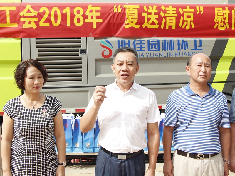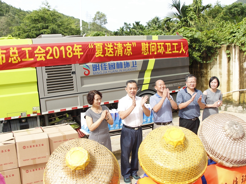 “你們辛苦了!感謝你們?yōu)槿齺喪忻瘛⒂慰蛣?chuàng)造了一個(gè)干凈整潔的人居環(huán)境,為三亞市“創(chuàng)文鞏衛(wèi)”工作作出的突出貢獻(xiàn)。”。張羽飛代表三亞市總工會(huì)向集團(tuán)公司全體職工致以親切的慰問。他指出,環(huán)衛(wèi)工人頭頂列日,揮灑汗水,以“寧愿一人臟,換來萬家凈”的精神,為靚扮鹿城、建設(shè)國際化熱帶濱海旅游精品城市提供衛(wèi)生保障。他勉勵(lì)大家繼續(xù)發(fā)揚(yáng)三亞環(huán)衛(wèi)人的精神,勇當(dāng)尖兵的決心,提高環(huán)衛(wèi)作業(yè)質(zhì)量,在三亞市社會(huì)文明大行動(dòng)和新一輪“創(chuàng)文鞏衛(wèi)”工作中作出新的更大貢獻(xiàn)。