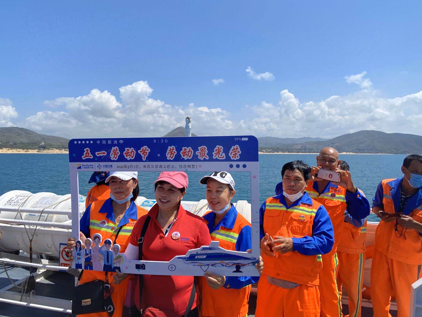 “五一”勞動節(jié)是全國勞動者共同的節(jié)日,為致敬無私奉獻的“馬路天使”,三亞藍色干線旅游發(fā)展有限公司于2020 年 5 月 1 日上午,誠邀明佳集團20名環(huán)衛(wèi)工人免費乘坐海上巴士出海觀光。