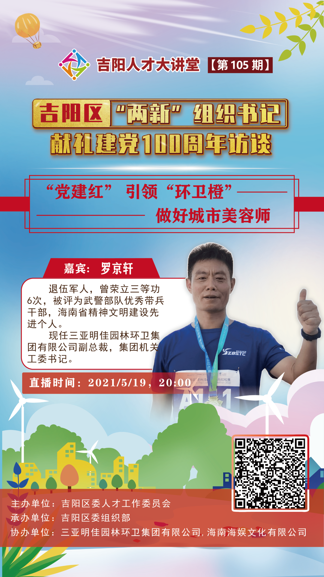 近日,第105期吉陽人才大講堂邀請到三亞明佳園林環(huán)衛(wèi)集團(tuán)有限公司副總裁、集團(tuán)機(jī)關(guān)工委書記羅京軒分享以“黨建紅”引領(lǐng)“環(huán)衛(wèi)橙”,助力城市清潔的好經(jīng)驗(yàn)、好做法,直播吸引近25.48萬人次在線觀看,其中不少網(wǎng)友為來自全國各地的環(huán)衛(wèi)工人。