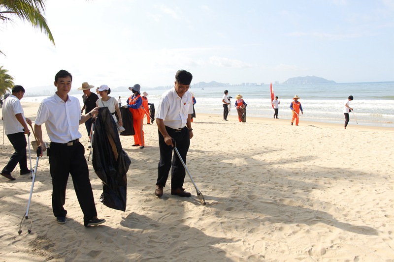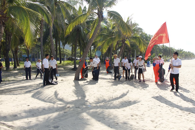 支部宣傳委員陳冬梅在活動(dòng)開始前首先代表集團(tuán)公司黨支部對(duì)長期堅(jiān)持在海灘清潔第一線的環(huán)衛(wèi)工們致以最高的敬意。她表示,公司黨員要發(fā)揮先鋒模范作用,主動(dòng)認(rèn)識(shí)海洋、保護(hù)海洋,樹立環(huán)保意識(shí),共同呵護(hù)三亞的碧海藍(lán)天、綠水青山。