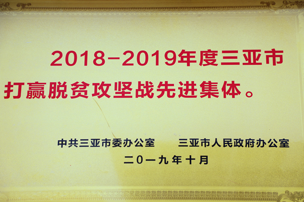 明佳集團(tuán)榮獲“2018-2019年度三亞打贏脫貧攻堅(jiān)先進(jìn)集體”稱號(hào)