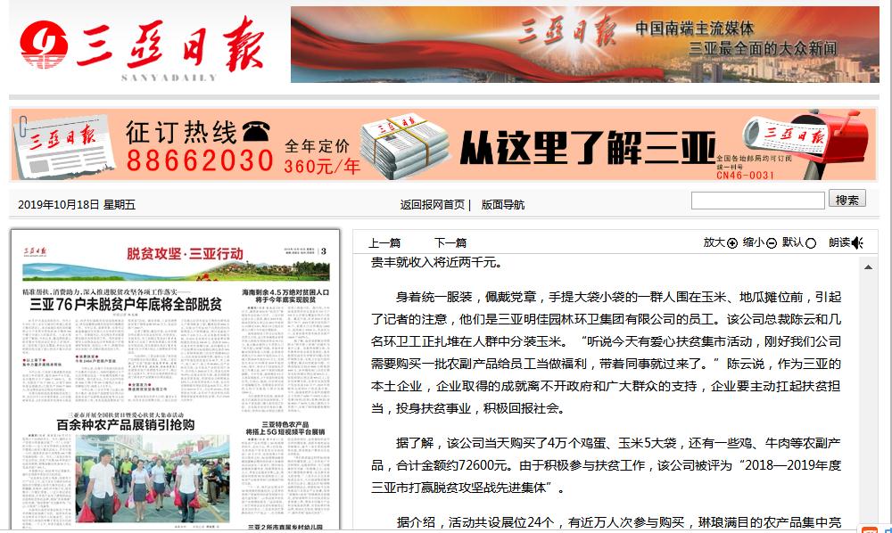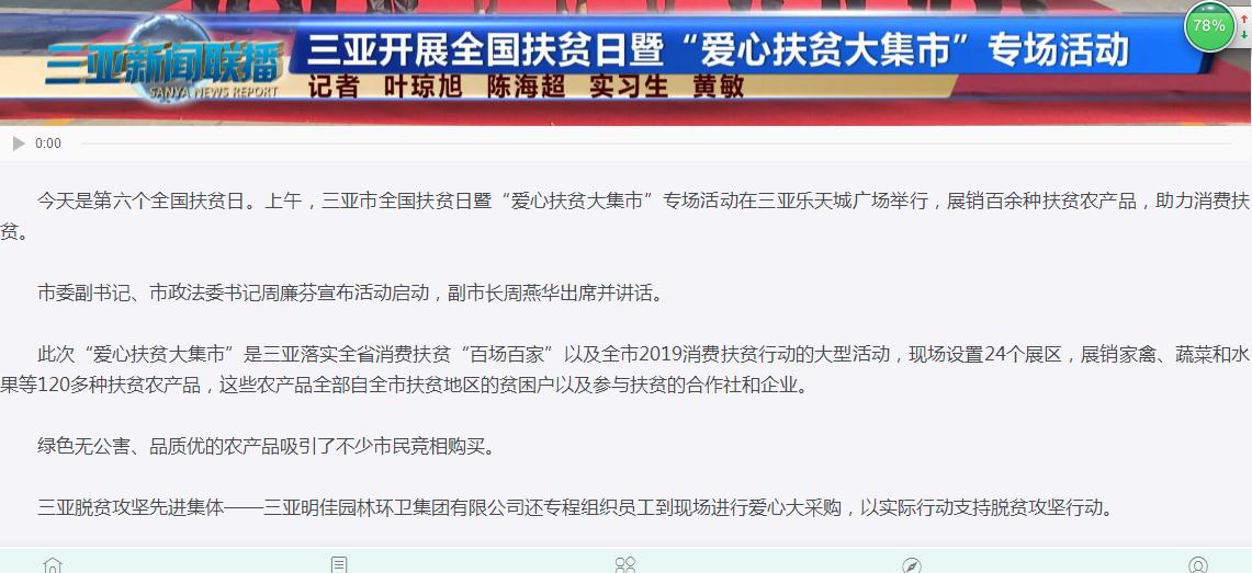 明佳集團(tuán)作為三亞的本土企業(yè),主動(dòng)扛起扶貧擔(dān)當(dāng),投身扶貧事業(yè),積極回報(bào)社會(huì)。在此次大采購(gòu)活動(dòng)中,集團(tuán)員工在總裁陳云的帶領(lǐng)下,購(gòu)買(mǎi)了4萬(wàn)個(gè)雞蛋、玉米5大袋,還有一些雞、牛肉等農(nóng)副產(chǎn)品,合計(jì)金額約72600元。三亞日?qǐng)?bào)和三亞新聞聯(lián)播分別對(duì)明佳集團(tuán)的愛(ài)心大采購(gòu)活動(dòng)進(jìn)行了報(bào)道。